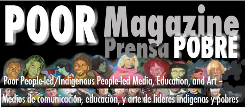 It’s been an honor to be associated with the latter three programs, because each, in its own way, epitomizes what KPFA should be about. Project-Censored media scholars Peter Phillips and Mickey Huff seek out issues and individuals who need better coverage than corporate media is giving. Andres Soto is a natural broadcaster and one of the best additions to KPFA in many years; he brings in-depth knowledge of both local politics and the music world. Tiny, Muteado and the Poor News crew deliver the voices and issues of low-income and no-income people, unfiltered by the commercial-media spin that depicts poor people as a social problem, instead of individuals who deserve the same rights and respect as everyone else. PNN may well be the most educational 15 minutes on the radio!POOR Logo