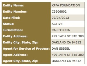 Documents registered with the California Secretary of State for a private “foundation” called the “KPFA Foundation seem to be part of a conspiracy by “SaveKPFA” insiders to gain total control of KPFA (under the guise of protecting KPFA) and to “capture” its license in the event of Pacifica’s dissolution. Further, it appears to be an attempt to privatize the Pacifica Foundation for the benefit of a few instead of the many. These documents were recently uncovered by Pacifica’s National Board (PNB) Secretary Janet Kobren, a United for Community Radio (UCR) candidate and whistleblower.KPFA_Foundation