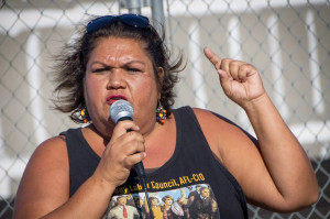 Janet Kobren at a protest at the San Leandro Walmart, 2013