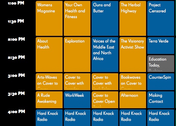 (In the same interval of time – the only programs added to the schedule by management policy were Against The Grain, Sundays with Peter Laufer (since canceled) and imported programs from New York (Behind The News) and LA (Uprising).